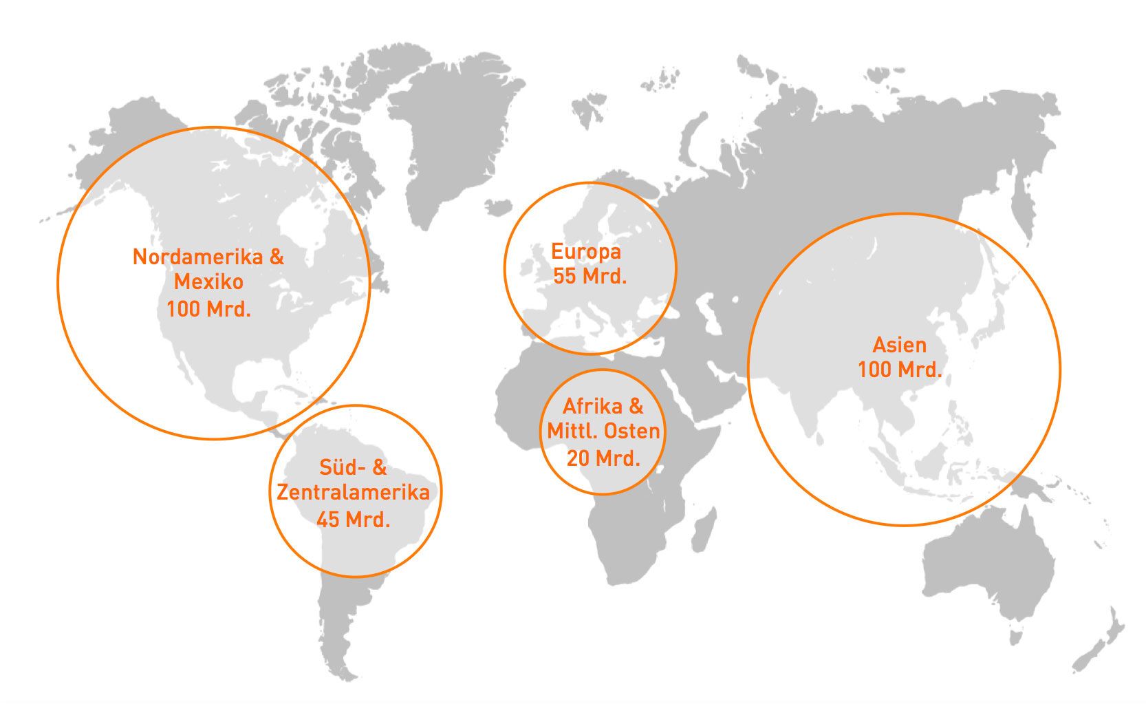 2015 wurden weltweit 320 Milliarden Alu-Dosen verkauft, davon je 100 Mrd. in Nordamerika und Asien sowie 55 Mrd. in Europa. Diese verteilen sich zu je einem Drittel auf Bier und Softdrinks, der Rest sind Energydrinks und andere Getränke (Quelle: BCME). Partizipieren Sie an diesem Milliardenmarkt mit unserer innovativen und nachhaltig umweltfreundlichen Lösung. Sprechen Sie uns einfach zu konkreten Informationen an.